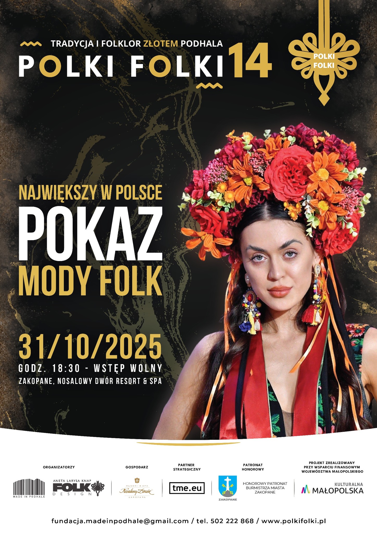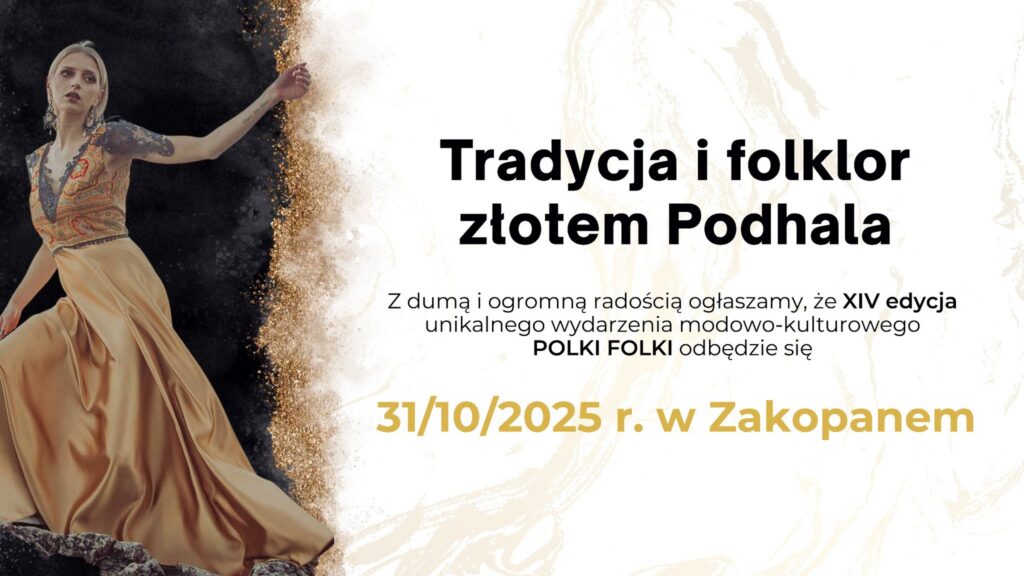 31 października 2025 roku w Nosalowy Dwór Resort & Spa w Zakopanem odbędzie się czternasta edycja wyjątkowego wydarzenia łączącego tradycję, sztukę, kulturę i design – Polki Folki XIV, której organizatorem jest Fundacja Made in Podhale. Tegoroczna edycja „Tradycja i Folklor Złotem Podhala” celebruje regionalne dziedzictwo, łącząc tradycję i folklor z nowoczesnym wzornictwem oraz sztuką. Złoto Podhala to jego najcenniejsze skarby: bogactwo kultury, piękno natury, majestat gór i barwy krajobrazu, które inspirują projektantów i artystów do tworzenia wyjątkowych dzieł.